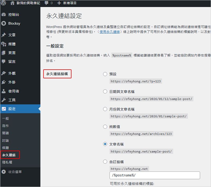 因為有影片回放,我現在才想起來,在把網址綁定主機之後,其實有幾個 WordPress 的基本操作一定要先做。