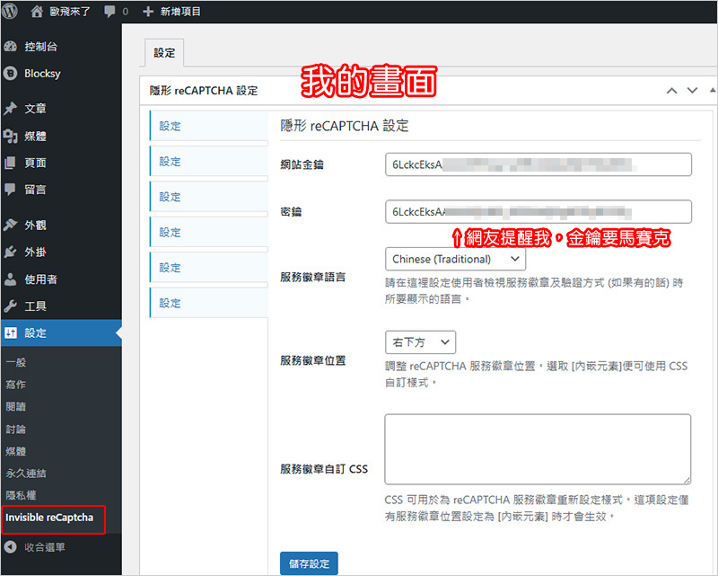 然後我依照一篇「快速在 WordPress 網站和聯絡表單中設定 Google reCAPTCHA」的教學開始做。