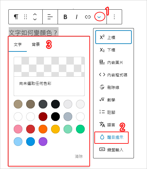 WordPress 預設的區塊編輯器,要怎麼幫文字改顏色或加底色?